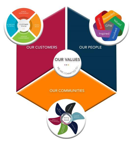 We are a values-based business in that we seek to put some common values at the heart of how we approach everything. Our values are focused on three stakeholder groups: